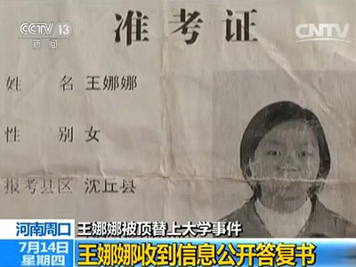 目前周口市政府已对3个问题分别答复,并将答复书寄给了王娜娜本人,根据周口市政府的答复,王娜娜事件发生后,周口市委、市政府按照《中国共产党纪律处分条例》《行政监察法》等相关法律规定,从市公安局,教育局等多部门抽调人员组成联合调查组。 经调查组调查,冒名顶替上大学事件,是由顶替人张莹莹的父亲张合停,及其妻王子胜,找到时任沈丘县二高教务处工作人员胡筱林办理的,胡筱林私自将本属于王娜娜的通知书转交张合停,而周口市职业技术学院把关不严,导致冒名顶替事件发生。