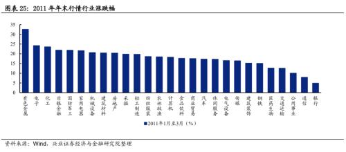 周期行业表现较优。2010年下半年以来大宗商品迎来二轮牛市,叠加周期补库,拉动建筑材料、钢铁、化工、有色等周期行业阶段性走强,成为2010年年末行情的主线。