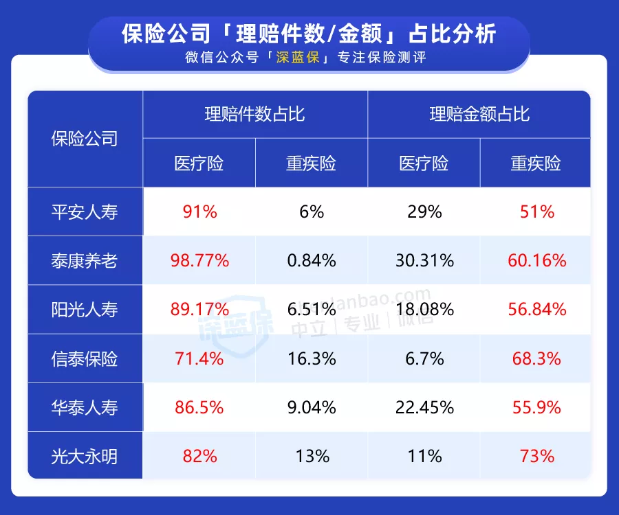 数据显示,对大部分保险公司来说,医疗险理赔数量最多,重疾险理赔金额最高。这也说明,