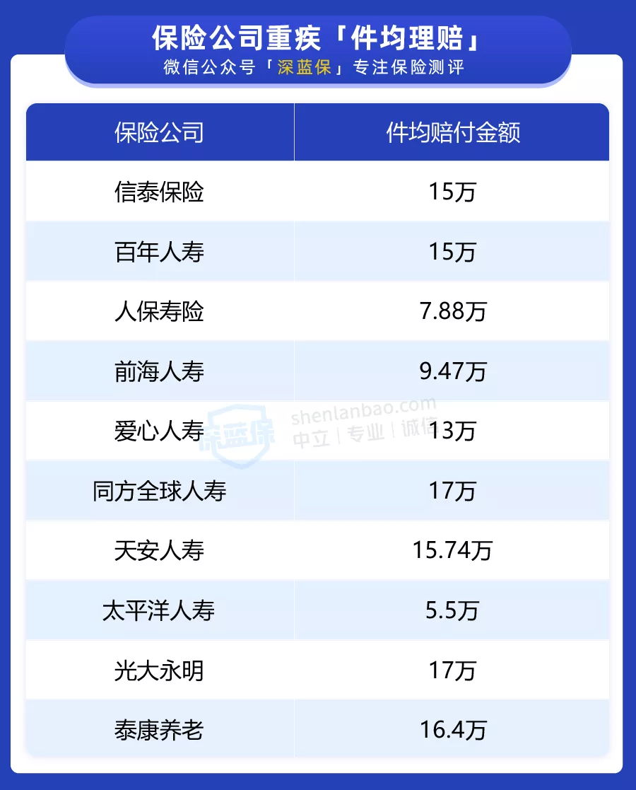 如图所示,上述保险公司的重疾理赔件均保额都在 20 万以下,