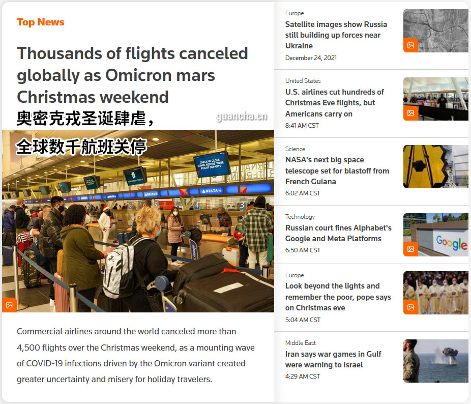 西方主要媒体都对此事保持关注,半岛电视台网站24统计数据显示,12月23日至25日,全球至少5000架次航班取消。