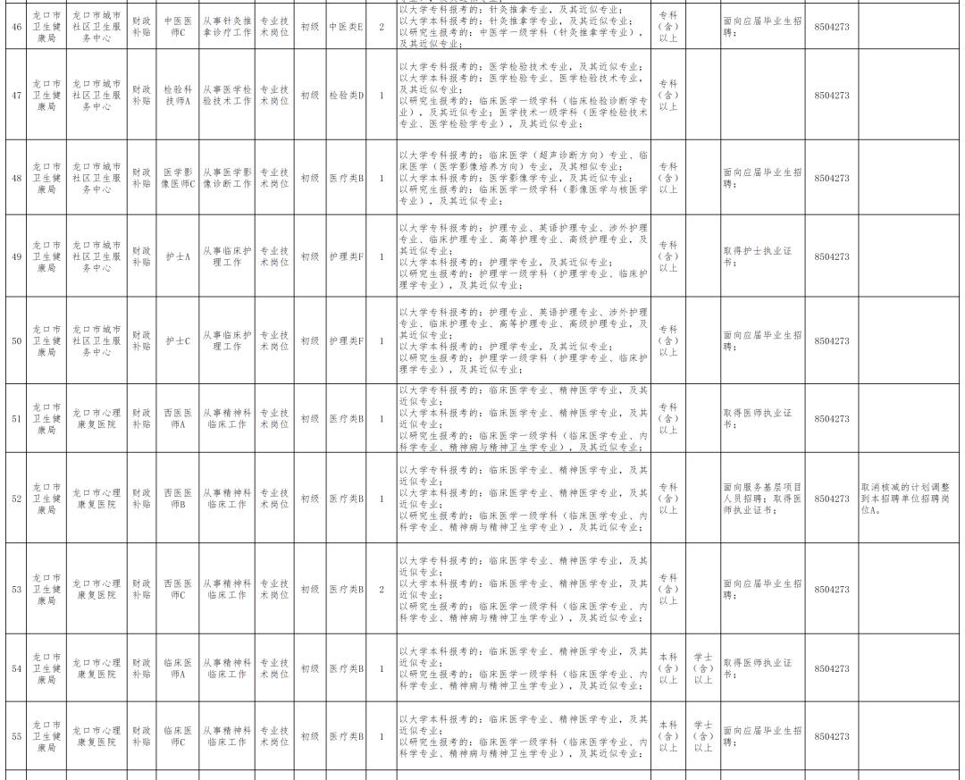 按照《事业单位人事管理条例》(国务院令第652号)等规定,2021年龙口市卫健系统事业单位面向社会公开招聘工作人员143名(含校医6名,招聘岗位要求详见附件1)。现公告如下: