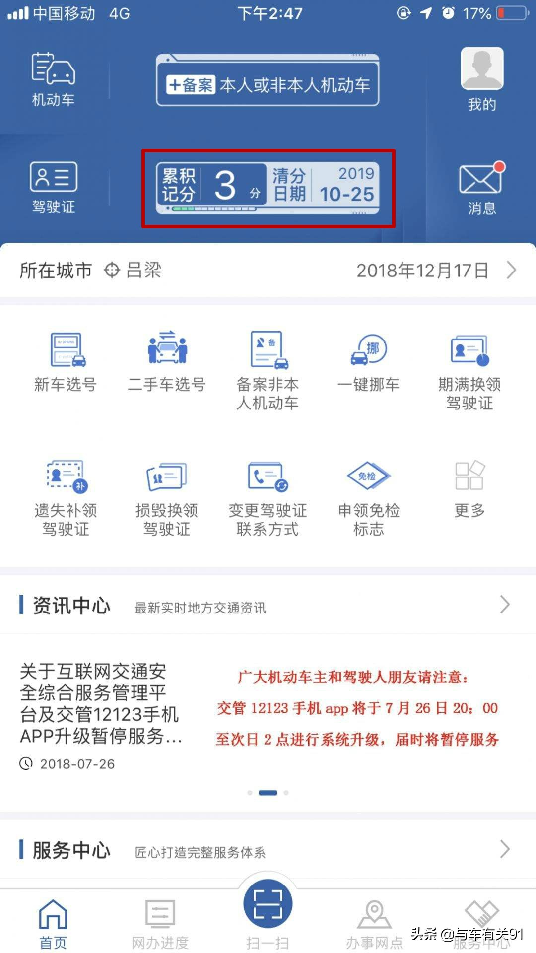 二是可以登录或者下载交管12123来查分,三是在微信里点开支付,然后城市服务,在下边有个车辆服务,