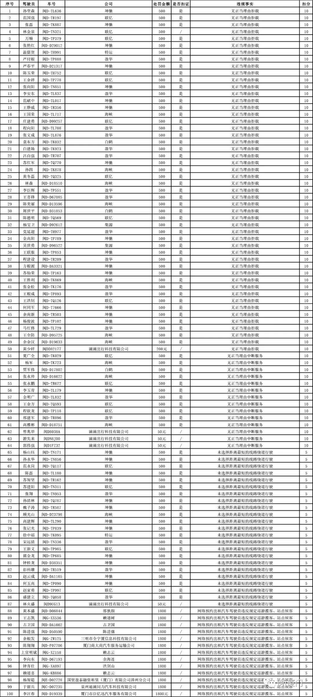本周,市交通局运输事业发展中心通过i听厦门发布最新一期“曝光台”,对2021年6月、7月、8月期间查处的598名出租汽车驾驶员的违规行为进行曝光。