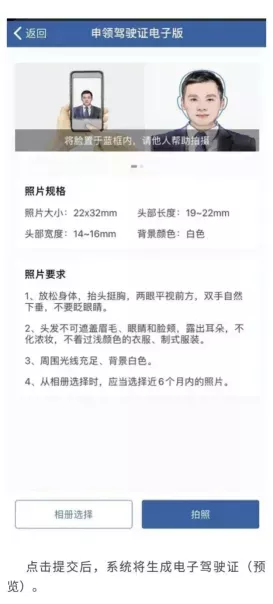 驾驶人申领“电子驾驶证”时需提交申请人的人像照片。目前提供三种方式: