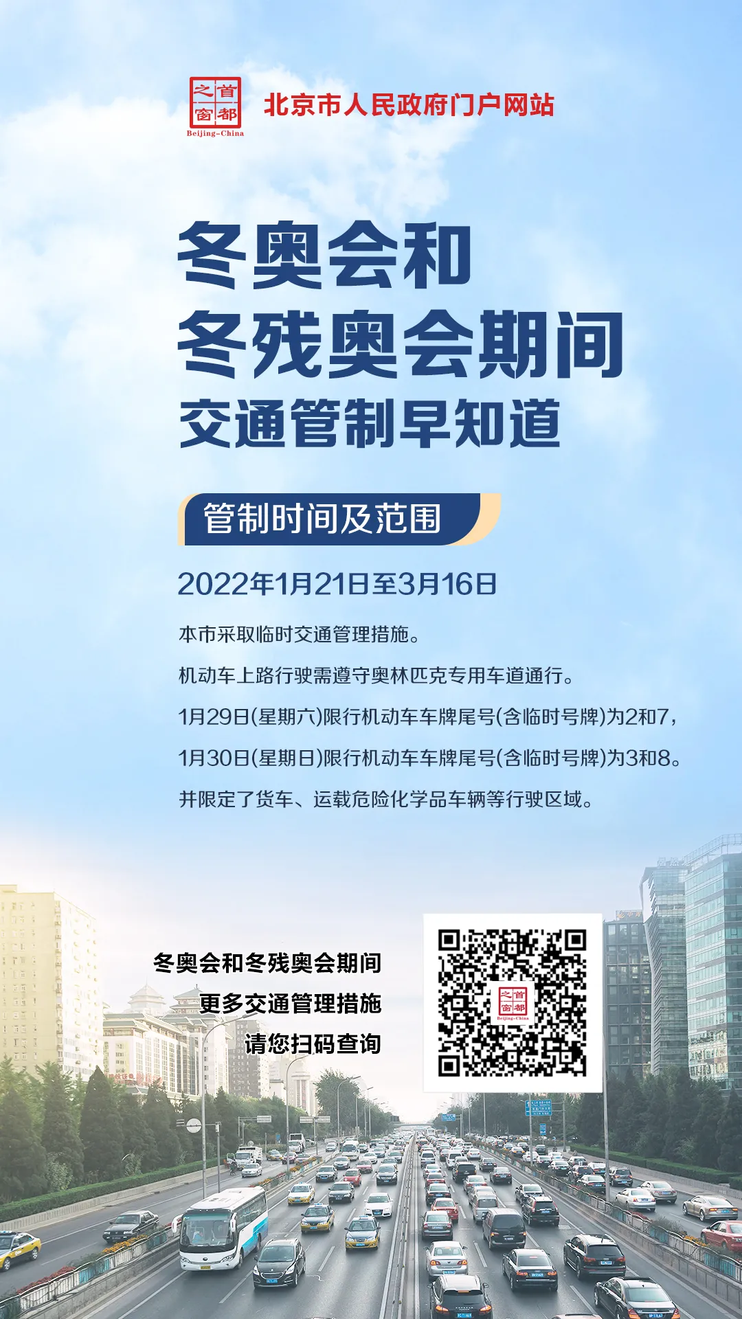 为保障北京2022年冬奥会和冬残奥会期间交通正常运行,根据《北京市人民代表大会常务委员会关于授权市人民政府为保障冬奥会筹备和举办工作规定临时性行政措施的决定》,市政府决定,在2022年1月21日至3月16日期间,本市采取临时交通管理措施。现就有关事项通告如下: