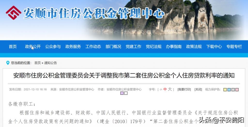 12 月 10 日,安顺市住房公积金管理中心发布安顺市住房公积金管理委员会关于调整安顺市第二套住房公积金个人住房贷款利率的通知。