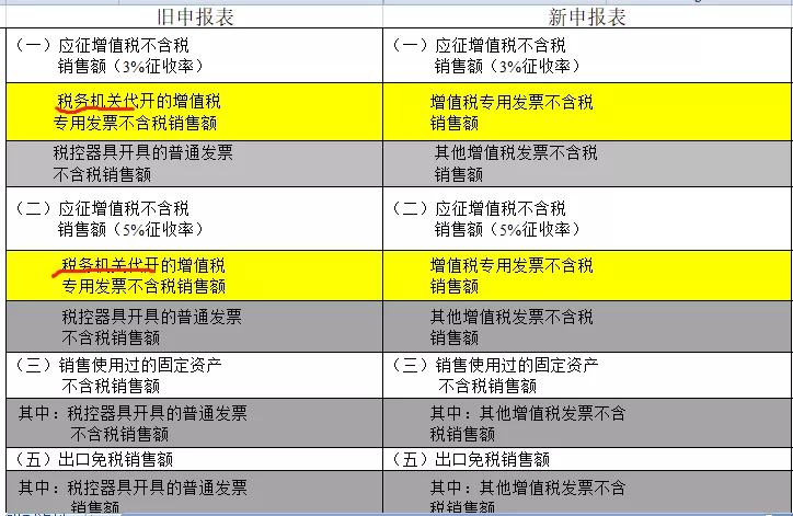 旧的申报表在开具发票栏次,栏次的名称一直是税务机关代开的增值税发票。