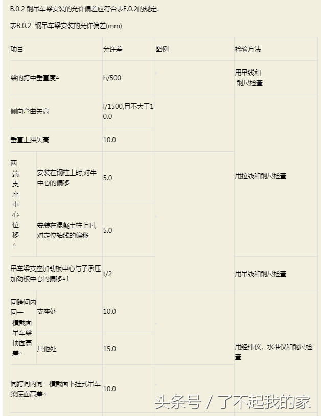 3.8、钢吊车梁或直接承受动力荷载的类似构件,其安装的允许偏差应符合本规范附录E中表E.0.2的规定。