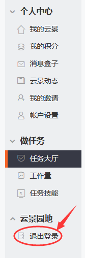 1、登录云景任务后,在左侧功能条“做任务”栏下面的“任务大厅”和“我的云景”主页“做任务”区域“彩色图标”,点击进去。
