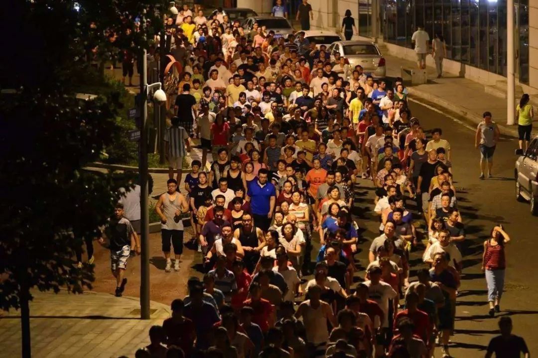 不知道你们见没见过这样的暴走团,在每天晚上夜幕降临后,一群叔叔阿姨大爷大妈,队员们身着统一队服,领队腰别音响手举大旗,一举占领楼下的停车场、运动场、马路以及各种开阔地带: