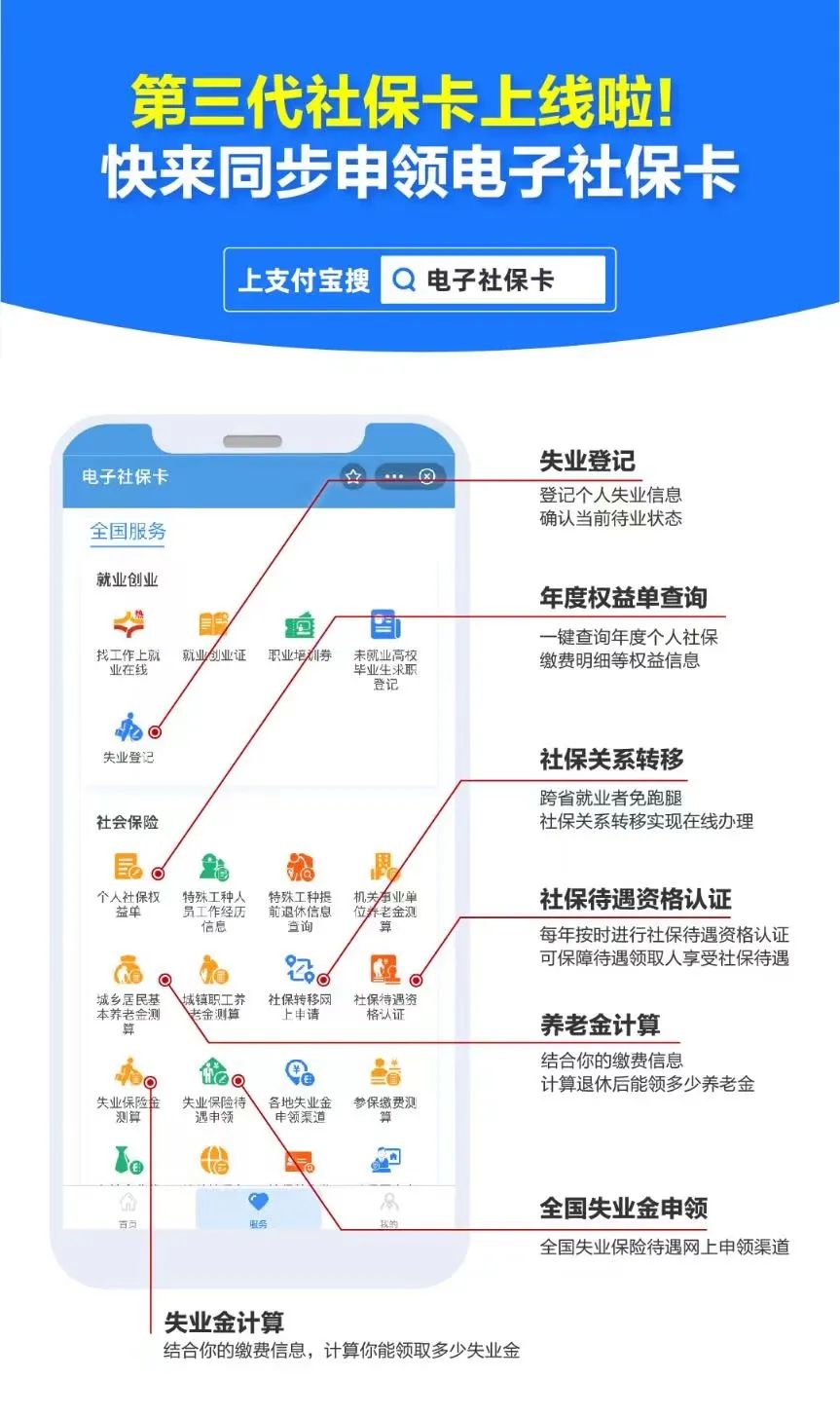 近日,人社部发文《关于开展电子社会保障卡同步申领工作的通知》,从2021年10月28日起,将在全国范围内实现推进三代社保卡和电子社保卡一起发放的工作,参保人在申领实体卡的同时,可以享受同步领取电子社保卡,一张实体卡,一张电子卡,领取时简单,使用时方便。支持市民上支付宝直接使用已同步申领的电子社保卡。