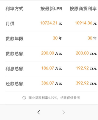 在图示之下,你还可以了解关于利息总额的详细情况!轻轻松松三步,算明白“你的月供是减少还是增加了”!