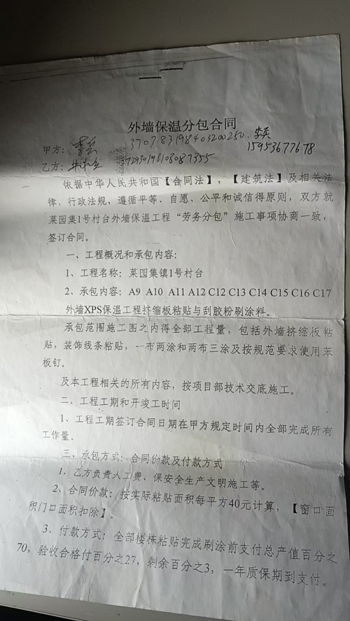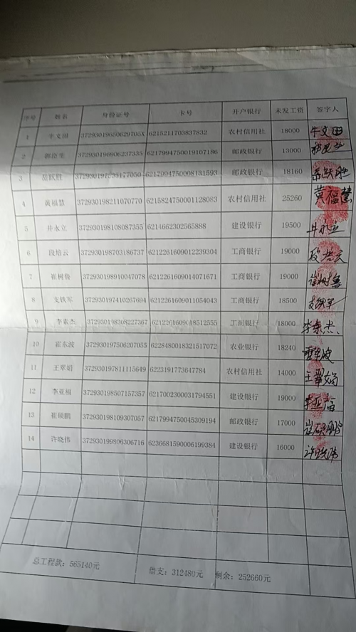 经了解,眼前的这些农民工是在该县菜园集镇1号村台工地打工的,他们给一个叫李兵的老板签订了外墙保温的分包合同,从2021年4月完工并验收合格,但一直拖欠14名农民工工资共计252660元至今。