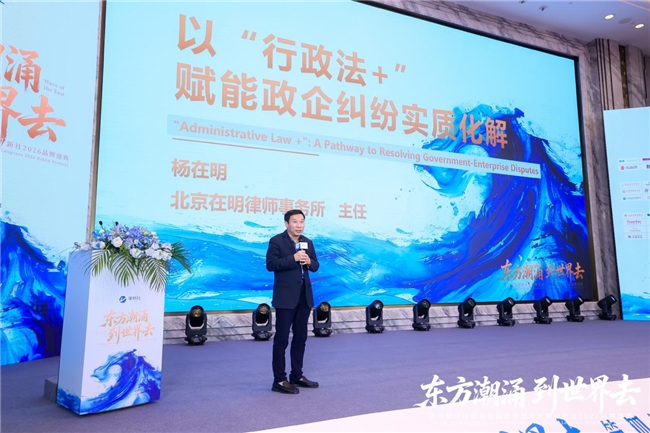 在颁奖典礼现场,杨在明主任于主旨演讲环节,以一组商务部的最新数据开启了题为《以“行政法+”赋能政企纠纷实质化解》的精彩演讲。他提到,我国2025年对外直接投资达1743.8亿美元,存量突破3.14万亿美元,连续多年位居全球前列。然而,随着企业“走出去”步伐加快和国内政企交互日益频繁,隐藏在宏观数据背后的法律挑战也接踵而至。