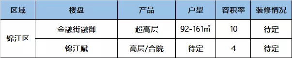 锦江区目前有案名的纯新盘不多,2个,金融街融御和锦江赋,剩下的大部分是去年才拍的地块,后期咱们再来慢慢盘点。