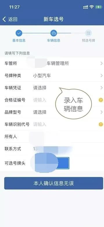 提交车辆信息之前,请务必确认注册用户信息中的身份证明类型(证件类型)、身份证明号码、姓名等信息准确无误。