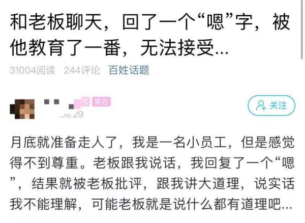 2019 年,就有网友发帖称,自己微信回复了老板一个"嗯",结果被老板批评:"和领导和客户都不要回复‘嗯’,这是微信的基本礼仪"。