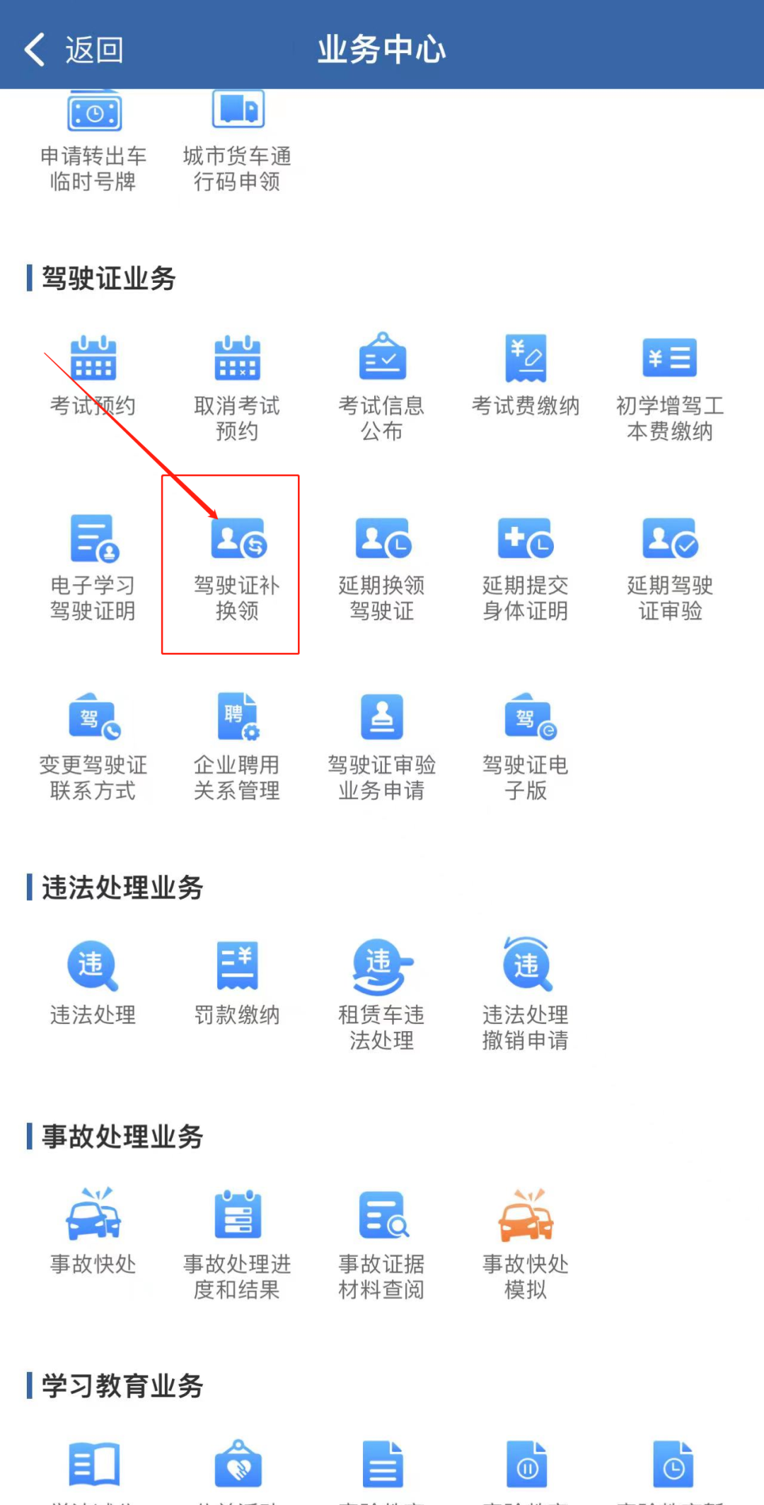 下载“交管12123”APP,注册并实人认证登录后,找到【驾驶证补换领】模块后,根据提示操作即可。