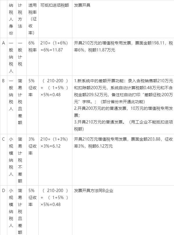 备注:C企业按照1%征收率开具发票的话,可抵扣进项税额为210÷(1+1%)×1%=2.08万元,票面金额207.92,征收率1%,税额2.08万元.