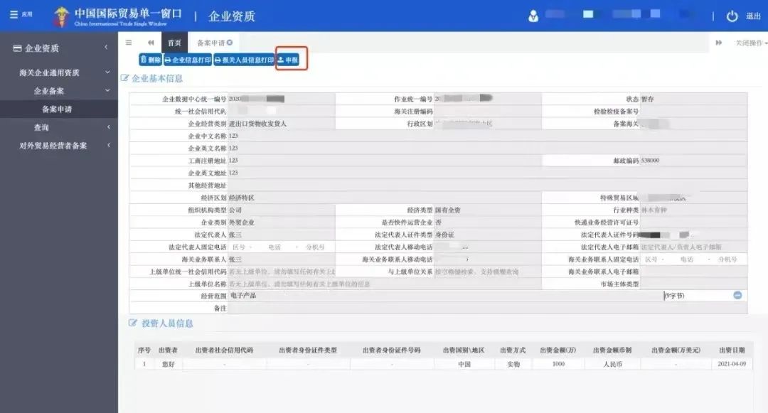 首次办理市场主体登记的企业可通过市场监管部门“多证合一”方式一并提交海关“进出口货物收发货人”备案申请。